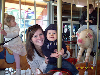 Besides it being absolutely freezing(literally) and the couple days of snow we've had, it's been really sunny. So last week we decided to bundle up and head to the zoo. There we met Aunts, Cousins and Grandma's. Joee loved seeing all the sea life there is at the Pt Defiance zoo. We saw sharks and baluga whales, touched starfish and fed the goats. We finished the day playing on the playground and of course, we can't leave the zoo without riding the Merry Go Round. It was Rushy's first time and he loved it! That kid did not stop smiling the whole ride...and the next one.